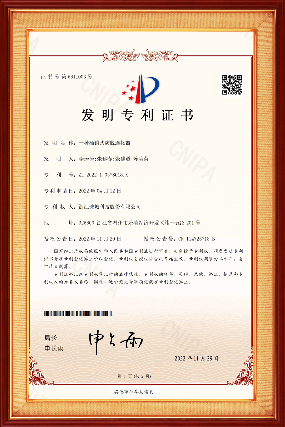 截至目前,珠城共計有效專利