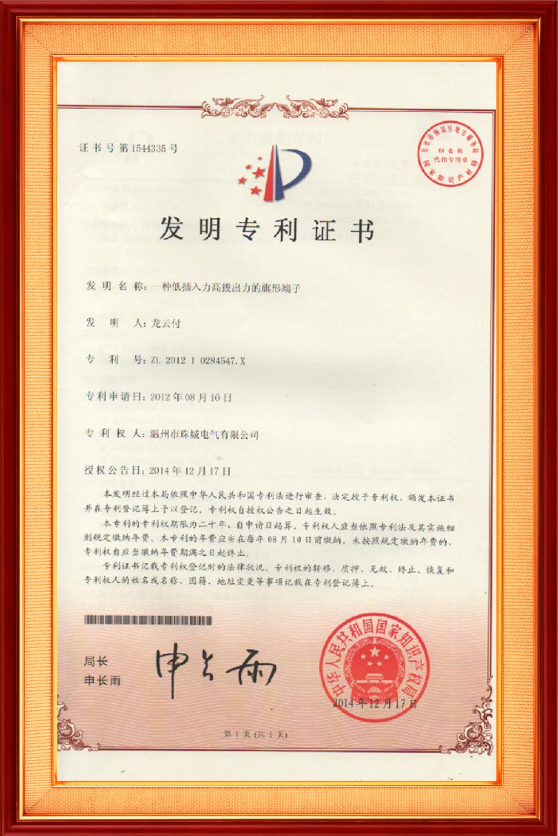 一種用于壓縮機玻璃柱的連接器發明專利證書